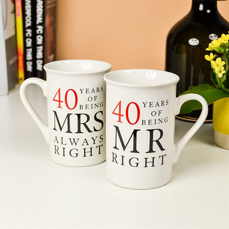 This set of his and hers mugs make the ideal gift for any couple celebrating their 40th wedding anniversary. They come in a pair and will raise a smile whenever used. In most (if not all) marriages it’s the women who wear the trousers!