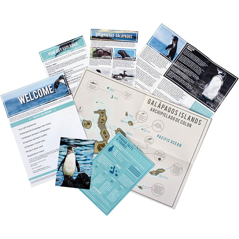 The gift tin is packed with information about the Galapagos Penguins, including the ones that you'll be helping. There's a fact sheet, Galapagos Island map and a penguin postcard, and of course a registration form to send off for your personalised supporter certificate.
