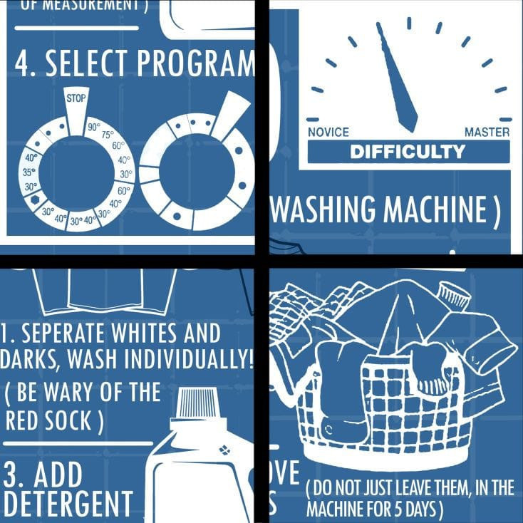 - A tongue-in-cheek instructional poster for loading the washing machine