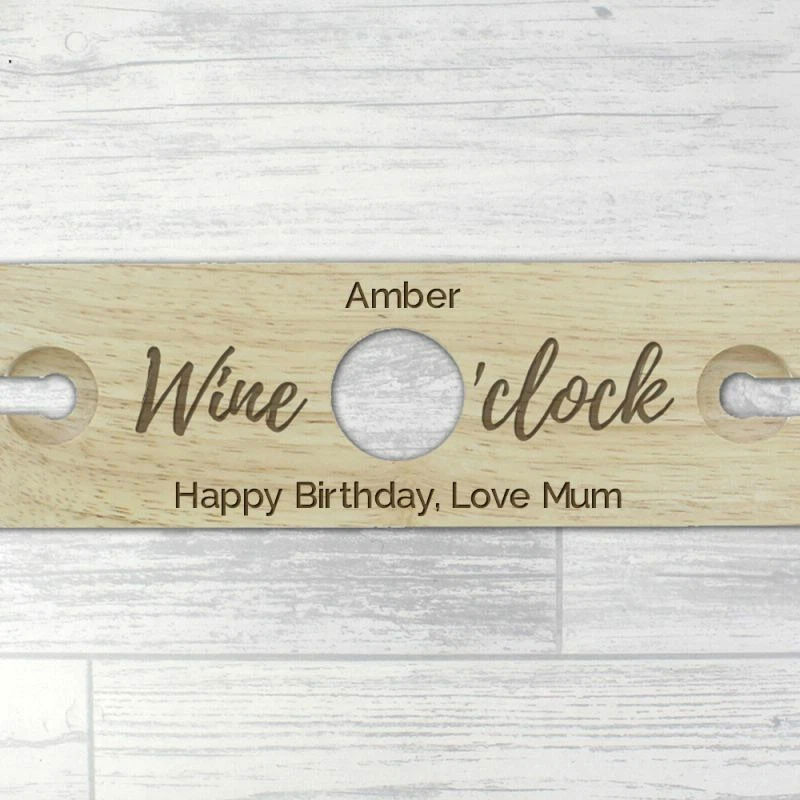 Moreover, it is an ideal gift for a thank you or a birthday treat. The wooden butler is carefully engraved with a message over two lines of up to 25 characters per line, above and below the ‘Wine O’clock’ design, the design is fixed text and cannot be amended.
